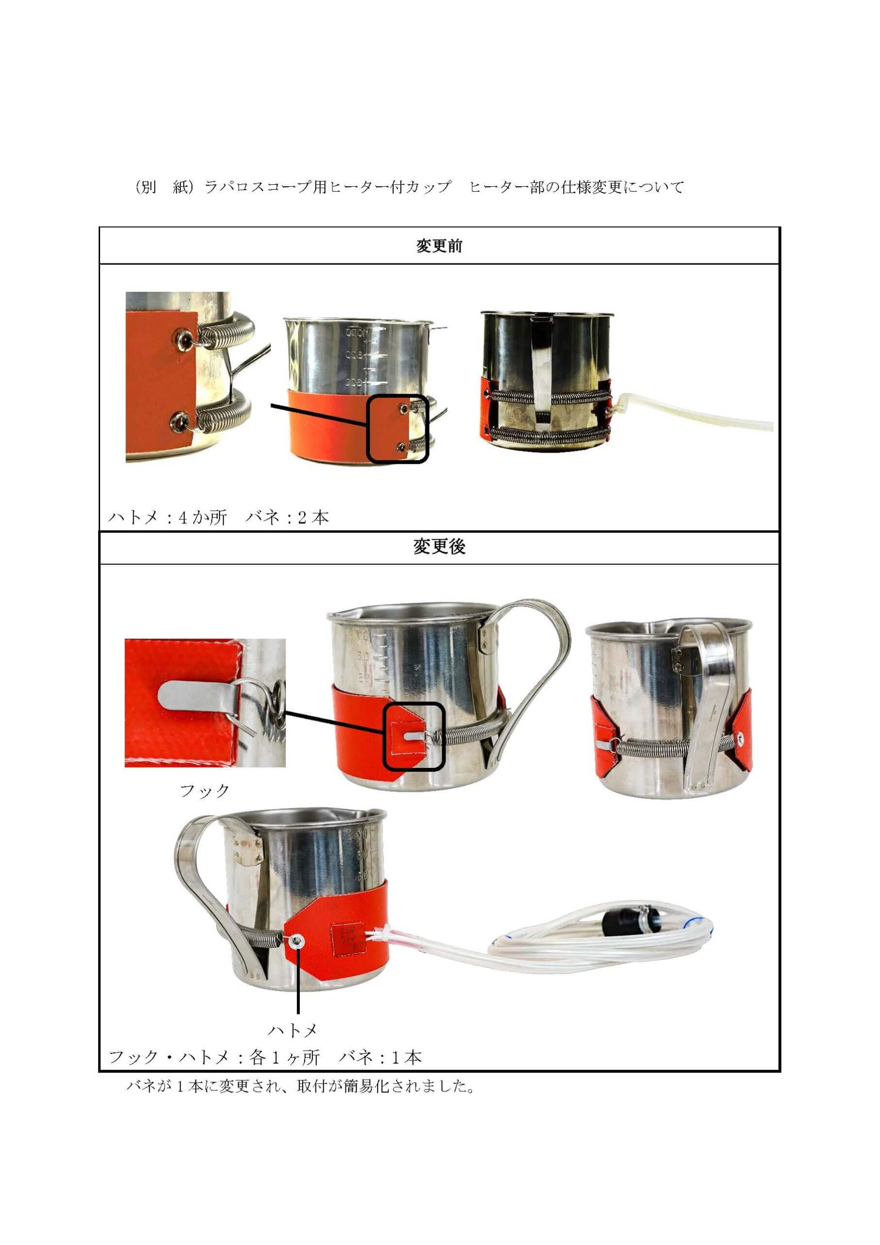 この度、弊社商品の「ラパロスコープ用ヒーター付カップ」が一部仕様変更となりました。